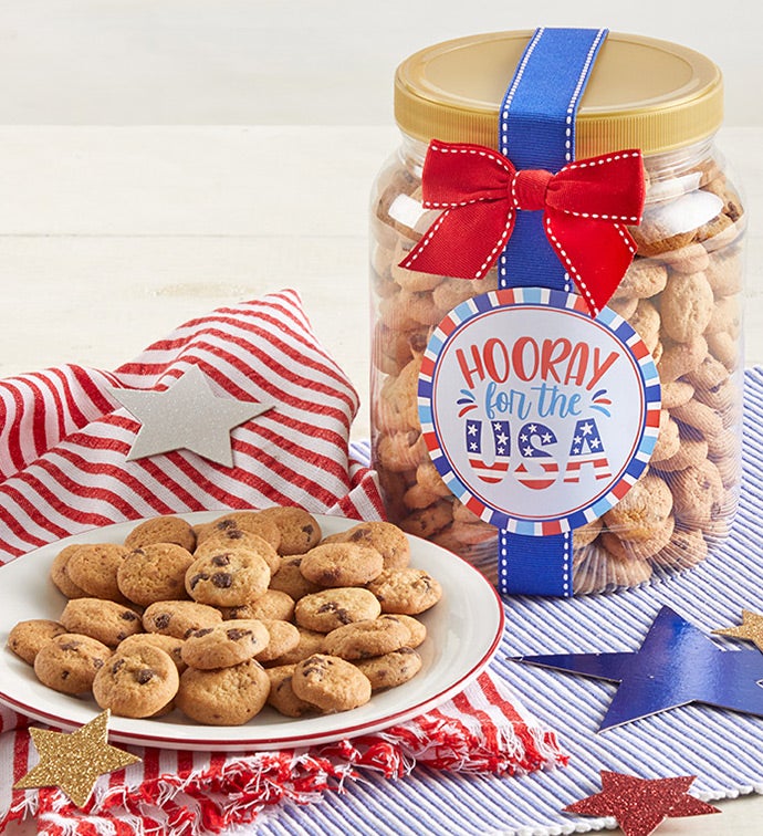 Display cookie jars or canisters decorated with American themes across your countertops or open shelving. Fill them with patriotic treats like red, white, and blue cookies or candies. These functional pieces provide storage while contributing significantly to your decorative scheme. Choose different sizes and heights to create visual interest across your display areas. The filled containers offer sweet treats for guests while maintaining your patriotic kitchen theme perfectly.