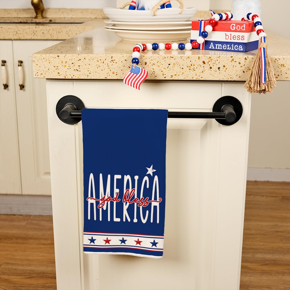 Replace regular kitchen towels with patriotic versions featuring stars, stripes, and inspirational American quotes. Hang them from decorative hooks or display rods for easy access during cooking. Choose high-quality cotton materials that remain functional while adding decorative appeal. These practical pieces work hard during meal preparation while contributing to your overall theme. The frequent visibility makes them excellent conversation starters with guests.