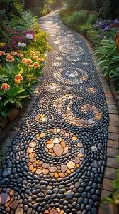 Paint plain garden pebbles with bright patterns or tribal motifs. Arrange them as a stepping-stone path or mosaic panel. Seal with varnish. The colorful pathway adds playful detail and guiding direction. It’s an easy DIY that adds color and draws attention through the garden.