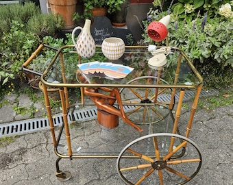 Use a two-tier wooden or metal cart. Decorate with plants, macramé runners, and small lanterns. Load a tray with tea jars, cups, or cozy blankets. Keep it near seating areas. It adds both practical function and boho flair in a small garden corner.