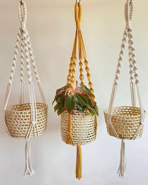 Hang plant pots with macramé holders from trees or pergolas. They add artistry and free up floor space. Use earthy-toned ropes and mix in bright pots. Pothos, ferns, and trailing succulents work great. The combination feels handcrafted and adds vertical greenery with vintage market charm.